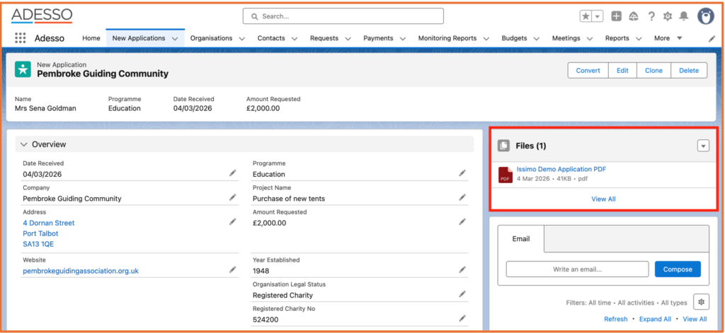 PDF Summary attaches neatly to the files section in Salesforce.